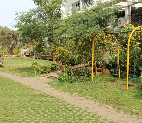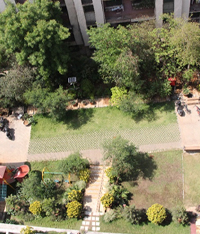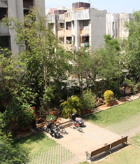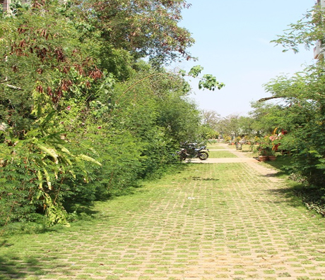 Internal roads are constructed with grass pavers to reduce heat radiation & increase ground water table. Buildind perefere is surrounded by trees to form green curtain. These trees are 100% re-planted from site itself and 100% succusefull. These pereferal trees act as visual barrier to the surrunding buildings.