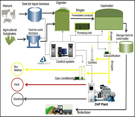 A biogas plant optimises the utilisation of manure, waste and other organic feedstock by converting the biomasses into energy and valuable bio-fertiliser. Biogas is a renewable, as well as a clean, source of energy. Gas generated through biodigestion is non-polluting; it actually reduces greenhouse emissions.